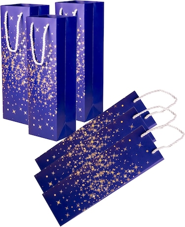 Cuisine Art Wine Bags, Wine Gift Paper Bags Single Bottle Wine Gift Bags Red Wine Tote Bags, 4.7 x 3.9 x 14.2’’ Wine Gift Bags Kraft Paper Wine Bags Bulk with Handles, Pack of 6 Blue Gold