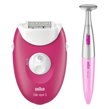 The Braun Silk Epil 3 Epilator Plus Massage Rollers And Bikini Trimmer 3420 Pink is a versatile hair removal device designed for women.