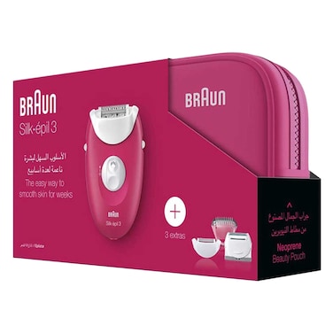 Braun Silk-Epil 3 epilator gently removes hair at the root, for long-lasting results. It removes the short hairs waxing cannot catch for smoothness that lasts up to 4 weeks. Great for beginners, massage rollers stimulate the skin for gentle epilation. The epilator’s Smartlight reveals the finest hairs for no miss hair removal. With 3 extras, including shaver and trimmer for sensitive areas like the bikini line.