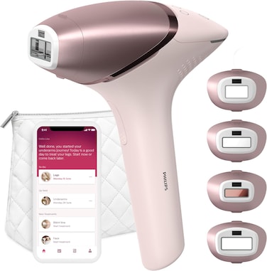 Lumea 9000 Series has five easily adjustable light settings. Our SmartSkin sensor reads your skin tone and helps you find the most comfortable setting. Intelligent attachments adapt treatment for each body area.
