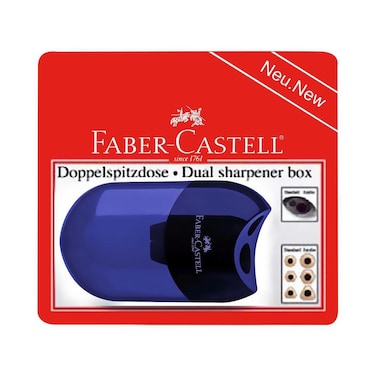 The Faber-Castell Dual Sharpener Box Blue is a high-quality pencil sharpener designed for both standard and jumbo-sized pencils.