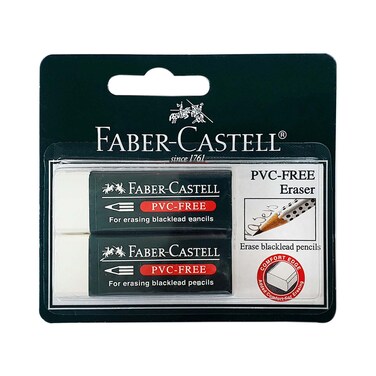 The Faber-Castell PVC-Free Eraser White comes in a pack of 2.