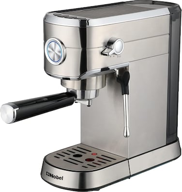Nobel 1 Litrr Detachable Transparent Water Tank Coffee Machine With 15-Bar Professional Pressure, Espresso Automatic Dispenses With Cappuccino High Pressure NCM15 Silver 1 Year Warranty
