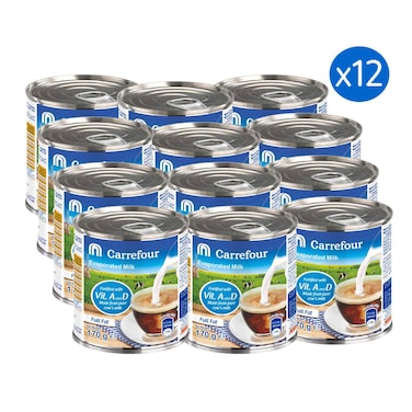 Carrefour Unsweetened Evaporated Milk 170g Pack of 12