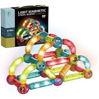 FITTO Magnetic Building Blocks Set with LED Lights - 52 Pieces Educational Toy for Creative Play