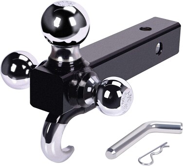 Specifications, Fits Standard 2" X 2" Hitches Made From Heavy Duty Steel With Powder Coat Finished 1-7/8" Towing Hitch Ball Max Capacity: 5000Lbs (Gtw) 2" Towing Hitch Ball Max Capacity: 6000Lbs (Gtw) 2-5/16" Towing Hitch Ball Max Capacity: 10000Lbs (Gtw) Hook Capacity: 10000Lbs Package Content: 1Pc 3 Ball Trailer Hitch 5/8" Hitch Pin Or Lock Feature: Tackles A Range Of Towing Tow And Haul Boats, Utility Trailers, Campers, Livestock Trailers, Recreational Vehicle Trailers, Dirt Bikes, Atvs, Motorcycles And More. Triple Ball Mount Tackles A Range Of Towing Fast And Easy Switch Between Ball Sizes Without Needing To Install Or Own An Entirely Different Ball Mount. Features Two Pin Holes And A Hook With Two Pins It Would Be Tight, Would Not Clanks Back And Forth, And A Durable Hook For Tow Strap