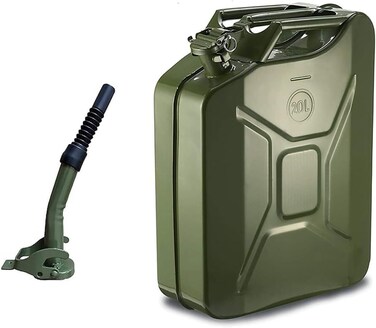 RACO Gasoline Metal Jerry Can for Petrol/Diesel/Water with Flexible Metal Spout Green Made in Taiwan (20 L)