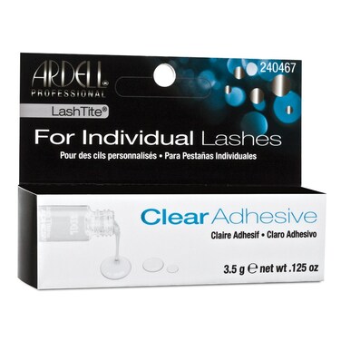 - Specially formulated and waterproof to hold individual cluster or single false eyelashes securely and comfortably, day after day, for up to 6 weeks with proper care. Ardell LashTite is clear and comes in a 3.5g / 0.125oz bottle. Directions: Clean your own lashes and remove eye make-up with a non-oily makeup remover, or soap and water. Dip the end of the individual false eyelash in adhesive, then place it slowly onto your own lashes, as close to your lashline as possible. Continue same method for each lash used. Please visit our hints and tips page for more information. NOTE: LashTite will not stick to natural lashes that have been cleaned with an oil based make-up remover. As with all lash adhesives, make sure to avoid using make-up removers and face wash containing oil (oil base). Caution: Keep away from children. Use only as directed. Avoid getting into eyes. If contact occurs, wash immediately with lukewarm water. Product Care Tip: Make sure to keep your LashTite adhesive AWAY from heat and direct sun light, and keep the cap on tight during storage.
