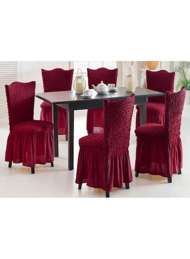 Fabienne 6-Piece Stretchable Dining Chair Cover Set Free Size Claret Red