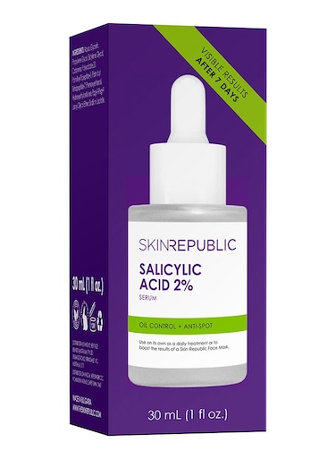 Spot-fighting serum with 2% salicylic acid helps reduce the visible appearance of spots and blemishes for a visibly clean and clear complexion. Use on its own as a daily treatment or to boost the results of a Skin Republic Face Mask.