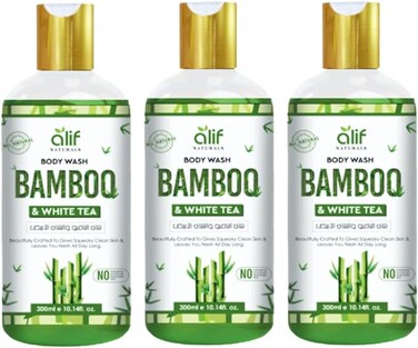 Alif Naturals Bamboo & White Tea Body Wash With Goodness of Shea & Vitamin E Rich in Antioxidants and help to Protect and Soothe the skin Pack of 3
