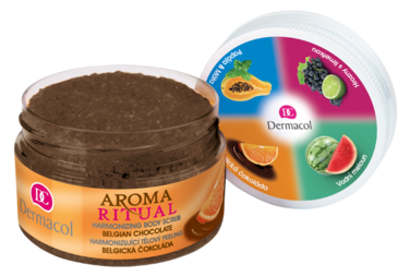 - This fine body scrub with the scent of Belgian chocolate and orange effectively and softly cleanses your skin and removes dead skin cells. The formula with fine sugar crystals is gentle on your skin and does not irritate it. The scrub contains orange oil, which refreshes you, cheers you up, relieves stress and leaves your skin beautifully scented and velvety soft.