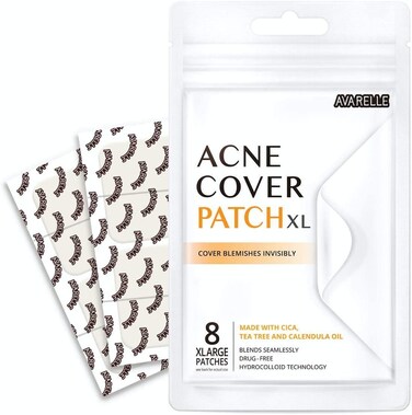 Extra Large Size Easy Peel Design Drug Free Blends in With Skin Protects From Dirt Re-Sealable Packaging Made with Tea Tree & Calendula Oil For Larger Areas Such as Cheeks & Forehead Avarelle Acne Cover Patch can be used for covering acne and protecting from dirt.