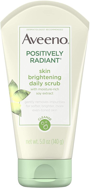 5-ounce tube of Aveeno Positively Radiant Skin Brightening and Exfoliating Daily Face Scrub cleanses and helps improve skin tone, texture, and clarity, for softer, brighter skin