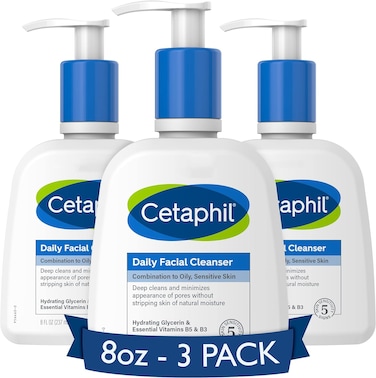 Cetaphil Face Wash, Daily Facial Cleanser For Sensitive, Combination To Oily Skin, Gentle Foaming, Soap Free, Hypoallergenic, 8 Oz (3 Pack)