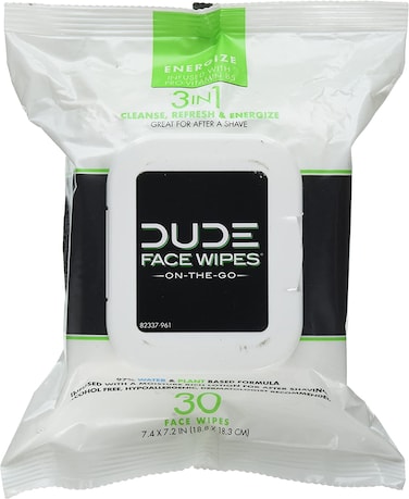 Dude Face & Body Wipes 30 Count Energizing & Refreshing Scent Infused With Pro Vitamin B-5, Face Cleansing Cloths For Men, Lightly Scented For Mid-Day Refreshment, Hypoallergenic, Alcohol-Free