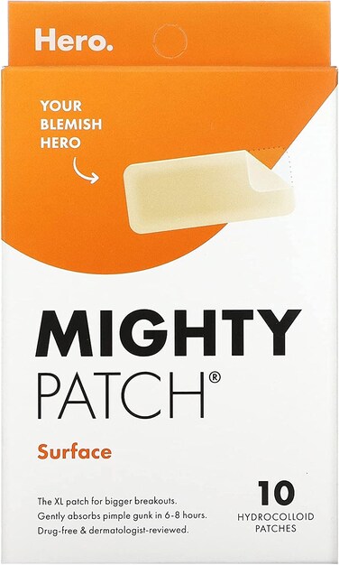 Your Blemish Hero #BeMighty Perfect for clearing larger breakouts. Protects for faster healing. Drug-free & non-drying. What's worst than spotting-a new pimple on your face? Discovering a cluster of them. When one patch just won't cut it, Mighty Patch Surface covers the entire breakout area and extracts impurities with the same hydrocolloid power you already know and love in Mighty Patch.