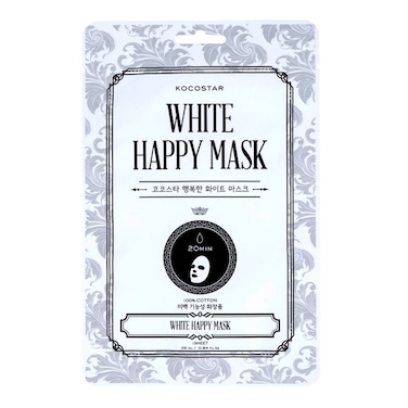 - White Happy Mask is made of pure cotton infused with niacinamide