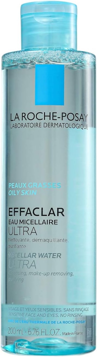 La Roche-Posay products.La Roche-Posay Effaclar Micellar Cleansing Water and Makeup Remover for Oily Skin is proven to remove dirt, oil, makeup and even pollution particles from your skin. Its gentle cleansing and effective micellar technology make it the perfect addition to your skincare routine.This micellar cleansing water is:Dermatologist and ophthalmologist tested to be suitable for sensitive skin and eyes.Paraben-freeOil-freeSoap-freeAlcohol-freeSuitable for sensitive skinNon-ComedogenicWhat is it formulated with?Dirt-encapsulating micelles: Naturally lift dirt, oil, makeup, and pollution upon contact with the skin with no harsh rubbing necessary.Poloxamer: A mild cleanser so gentle it is used in contact lens solutionLa Roche-Posay Thermal Spring Water: Antioxidant-rich water to soothe skinGlycerin: Hydrates skinZinc: Purifies and refreshes skin to remove excess oilApply micellar water to a cotton pad and gently wipe face, eyes, and lips. Repeat until cotton pad looks clean and no need to rinse. Use as a facial cleanser, makeup, remover, or a facial toner for oily skin. Micellar cleansing water is also available in 200ML and 100MLIngredients: Aqua / Water, Peg-7 Caprylic/Capric Glycerides, Poloxamer 124, Poloxamer 184, Peg-6 Caprylic/Capric Glycerides, Glycerin, Polysorbate 80, Zinc Pca, Sodium Hydroxide, Disodium Edta, Bht, Myrtrimonium Bromide, Parfum / Fragrance.Product packaging may vary.
