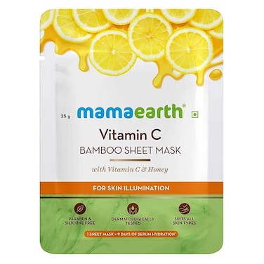 Mamaearth Vitamin C Bamboo Sheet Mask With Honey For Skin Illumination White 25g