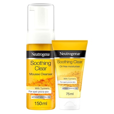 Neutrogena Soothing Clear Mousse Cleanser With Turmeric 150ml And Soothing Clear Oil-Free Moisturiser With Turmeric 75ml