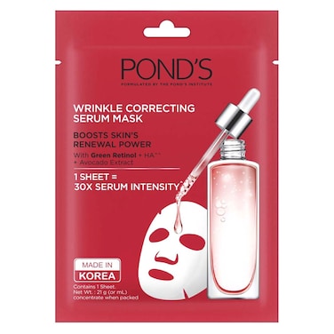 - Ponds face mask with wrinkle-correcting serum boosts skin renewal power thanks to its formula which contains green retinol ha avocado extract