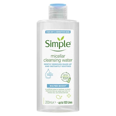 Simple Waterboost Cleansing Water For Sensitive Skin Micellar Instantly Soothing Makeup Remover 200ml