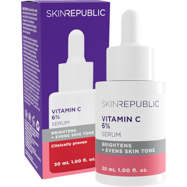 - Serum infused with 6% vitamin C helps visibly even pigmentation and reduce dark spots, leaving skin with a bright and luminous complexion. Use on its own as a daily treatment or to boost the results of a Skin Republic Face Mask.