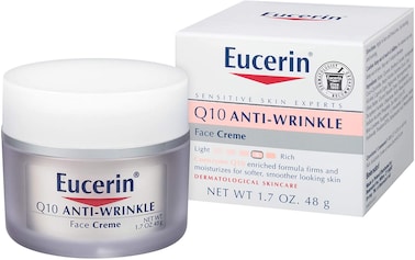 Size:1.7 Ounce (Pack of 1)Eucerin Q10 anti-wrinkle sensitive facial skin creme, dermatologist recommended, reduces the look of fine lines and wrinkles within 5 weeks, firms and moisturizes for softer, smoother looking skin, can be used alone or under make-up, fragrance-free, alcohol-free, non-comedogenic.