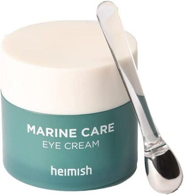 TOTAL EYE CARE CREAM FOR WRINKLE AND HYDRATION! Heimish presents you the Marine Care Eye Cream made to flatten your wrinkles, hydrate your skin, and reduces dark circles. This rich and thick cream is recommended to use at night to help your skin absorb all of the nutrients and minerals so that you can kick off the morning with a bright start! Made with fermented seaweed extract and mineral-rich seawater. It rejuvenates the area around the eye. Lessen the appearance of wrinkles and fine lines including Peptide, Collagen, Adenosine. Reduces puffiness and comes with a cooling eye roller ball to help massage the cream under your eyes. Protects skins natural barrier and provides moisture with enriched peptide and plant stem cell extract. Moisturizes dark complexion with 51% of Miracle Marine Water and 2% of Niacinamide.