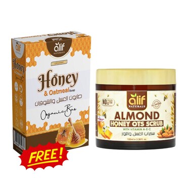 Introducing Alif Natural’s all-natural Almond Honey Oats Scrub, specially formulated for sensitive, acne-prone skin. Made with organic ingredients, this gentle scrub is designed to exfoliate and brighten your skin while reducing the appearance of blemishes and redness. The perfect blend of almond oil, honey, and oats work together to deeply moisturize and nourish the skin, leaving it feeling soft and refreshed. The natural anti-inflammatory properties of the ingredients help to soothe and calm the skin, making it the perfect addition to your skincare routine. Perfect for all skin types, our Almond Honey Oats Scrub is free of parabens, sulfates, and harsh chemicals, making it safe for even the most sensitive skin. Say goodbye to dull, blemished skin and hello to a brighter, healthier complexion with our Almond Honey Oats Scrub!