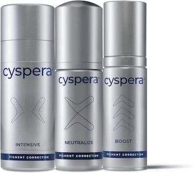 1. CYSPERA INTENSIVE The cysteamine complex delivers a powerful antioxidant activity to improve the appearance of persistent brown patches and dark spots. 2. CYSPERA NEUTRALIZE Helps re-balance the skin pH and prepares the skin for Cyspera Boost. 3. CYSPERA BOOST Isobionic-Amide Complex works synergistically to even skin tone, improve complexion and deliver a natural and healthy glow.