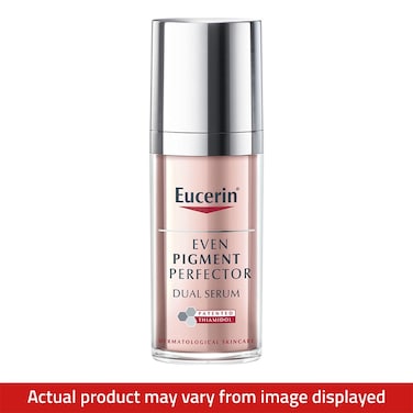 Eucerin Even Pigment Perfector Dual Serum brings together two serums that work in different ways: Thiamidol is an effective and patented ingredient that acts at the root cause of dark spots is clinically proven to reduce dark marks, preventing their re-appearance with regular usage and concentrated Hyaluronic acid is one of skin’s most effective moisturising substances that helps skin to attract and retain moisture.
