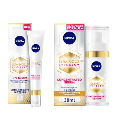 NIVEA Luminous 630 Even Glow Anti Dark Spot Concentrated Face Serum 30ml + Anti Dark Circles & Puffy Eyes Serum 15ml