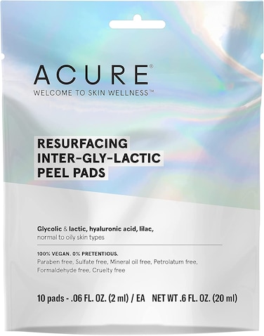 Acure Resurfacing Inter-Gly-Lactic Peel Pads, 100% Vegan, Clarifying & Calming For Normal To Oily Skin Types, With Hyaluronic Acid & Lilac, 10 Count