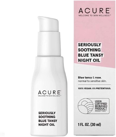 Acure Seriously Soothing Tansy Night Rose Oil 100 Vegan For Dry To Sensitive Skin, Blue, Unscented, 1 Fl Oz