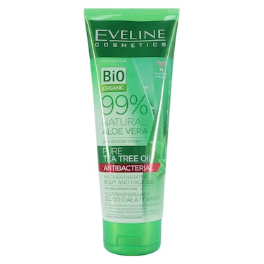 Eveline Cosmetics Natural Aloe Vera Pure Tea Tree Antibacterial Body And Face Gel Green 250ml