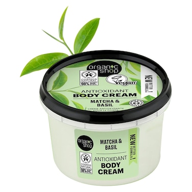 - Thanks to its special composition the body cream by Organic Shop nourishes the skin with precious plant extract obtained from matcha and basil
