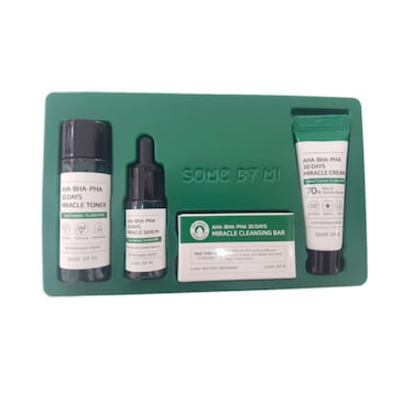 <li></b> AHA.BHA.PHA 30 Days Miracle Starter Kit. Miracle Routine that will put your skin worries to sleep (Cleansing Bar+Toner+Serum+Cream). 4 Steps Solution of Miracle Series helps skin stay healthy throughout by caring for skin troubles and preventing skin break out. <li>Miracle 4-Step Solution: <li>Step 1 Miracle Bar: Deep Cleansing to the pores! <li>Step 2 MIracle toner: Wipe off the Dry flakes out! <li>Step 3 Miracle Serum: Calming Down for skin irritation.<li>Step 4 Miracle Cream: Firming up the skin Barrier. <li>Mission: Save the Hopeless Skin!
