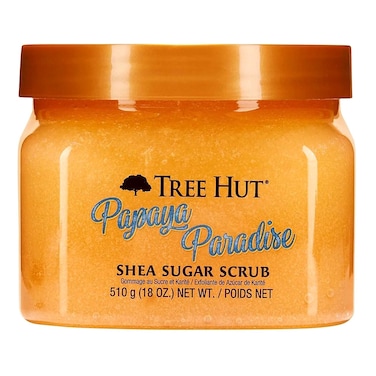 - Tree Hut Papaya Paradise Shea Sugar Scrub is paraben free vegan sulfate-free alcohol-free contains no formaldehyde donors has a no-slip formula and long-lasting fragrance