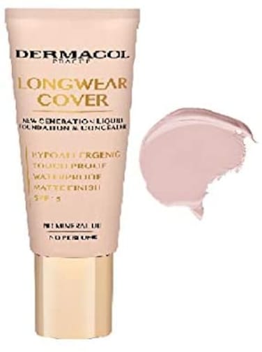 • <p>Pattern Name:Fair<p>Its light, fluid formula is very easy to apply and does not leave a feeling of a heavy foundation that weighs on your skin. Yet, the foundation provides high coverage and can be used not only as a conventional foundation over the entire face, but also as a concealer to cover smaller skin imperfections. Longwear Cover is suitable for all skin types (including dry skin), it is hypoallergenic and contains SPF 15. It contains vitamin E (that protects your skin from damage caused by free radicals) and tiny particles of jojoba wax that dissolve when they come into contact with the skin, creating a protective film that makes Longwear Cover waterproof.
