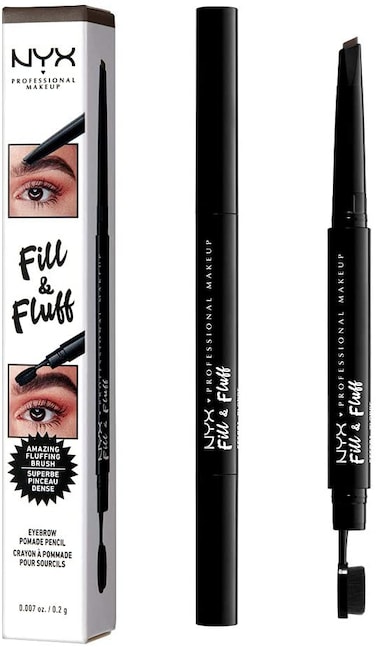 Size:Pack Of 1 Color:Brunette 06Fill, define, tame, build! NYX PROFESSIONAL MAKEUP Fill & Fluff Eyebrow Pomade Pencil does it all! This first-of-it's-kind brow pomade pencil features a teardrop shaped tip on one end for drawing precise hairs, lining, shading and filling, plus the cute micro paddle brush on the other end for fluffing and blending. The smooth waxy pomade formula coats every hair creating blend able texture so you can build your bushy boy brows like a pro! Whether you need to define and tame unruly eyebrows our build some new arches from scratch, Fill & Fluff Eyebrow Pomade Pencil will be a total game changer for you.