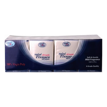 Cool & Cool Soft And Gentle Mini Tissues White 10 Sheets Pack of 12