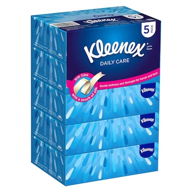 Kleenex Daily Care Facial Tissue Pack of 5 Boxes 130 Sheets x 2 Ply