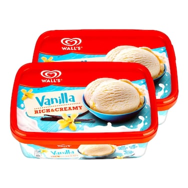 Wall's Rich and Creamy Vanilla Ice Cream 1000ml Pack of 2