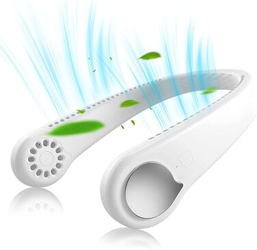 Generic White Portable Bladeless Neck Fan 360 Degrees, Rechargeable Usb, 48 Outlets, Hands Free Hanging Fan, Indoor & Outdoors Sports Gym Running Travel Quite Design, 3 Speed 1800mAh Battery