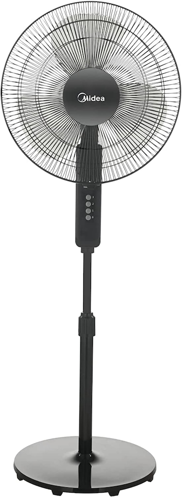 Midea Pedestal Stand Fan With SQD Motor, 16 Inch, 3D Oscillation Directions, 3 Speed Levels & Adjustable Height, 5 Leaf Blade With 7.5 Hours Timer, Best For Home & Office, Black, FS4019K