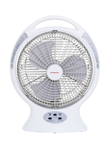 Summer, cool wind! Feel free to enjoy!Olsenmark\'s Desktop Rechargeable Fan with LED lets you experience the natural wind, brings you a cooler experience, and instantly gets rid of the heat of summer. This Olsenmark Desktop Fan stands out from the crowd thanks to its modern design, ease of storage, portability, USB rechargeable fan, and side night light. A bright LED light on the side provides illumination at night or while camping in the summer. It has a built-in 6V, 4.5Ah battery and can be fully charged in 12-15 hours. When fully charged, it can support about 3.5 hours at high speed and 5.5 hours at low speed of cordless cooling with a 25-hour LED light, which is great if you are going to use it outside. It also uses a USB plug to provide a continuous, light breeze on hot days. The grille is very easy to remove. Slightly twist and remove the fan\'s front grill to clean the dust from the blades. A built-in, optimized PCB chip can provide charge and discharge protection while also preventing short circuits and other security issues. .Product dimensions: 41.5x17.3x53.8 cm; product weight: 2.925 kg.'