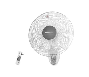 Olsenmark OMF1702 Wall Mounted Electric Cooling Fan with Remote ControlBecome a Major Global Player in the Fan, Olsenmark 16-Inch Wall Fan with Remote,A stylish and attractive wall fan will serve as a nice additional fan in your bedroom in the hot summer months. The wall fan comes with a remote control, letting you operate it from your bed while you enjoy a movie in your bedroom. With a high motor speed, this fan is going to give you a good breeze, making the room cool so you can enjoy more comfortable afternoon naps. The 16-inch fan allows for a moderate amount of airflow that can effectively cool a small to medium-sized room. The fan distributes air over a wider area, as it is placed against a wall and helps the air circulate throughout the room. The 7.5-hour timer function automatically turns off the fan, which is very useful. The fan also has a remote control, which makes it easy to control the functions from a distance. The 16-inch wall fan is a convenient and efficient way to cool down your space..Product dimensions: 44.5x19.5x44.5 cm; product weight: 2.270 kg.'