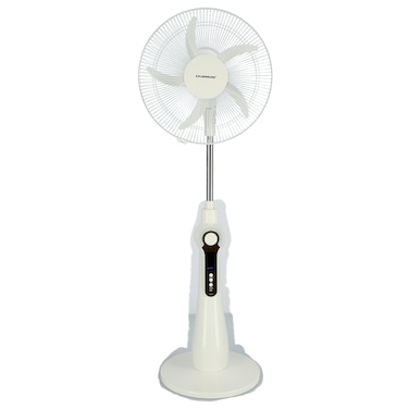 Olsenmark OMF1784 Rechargeable Stand Fan, 16 Inch- LED Light - Remote Control - 12V, 4.5Ah Lead-Acid Battery - Timer Function - Mobile Charging Port - Solar Connection - Home/Office Use